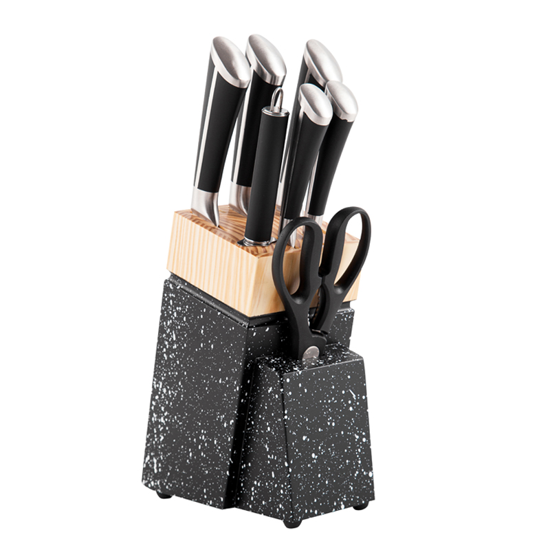 سرویس چاقو هفت پارچه مدل کارلا طرح چوب این سرویس چاقو شامل هفت قطعه کاربردی است که تمام نیازهای آشپزی