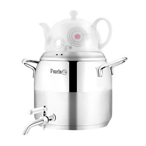 این محصول با بدنهای از استیل ضدزنگ و مقاوم ساخته شده است که نه تنها در برابر حرارت بالا دوام بالایی دارد، بلکه به مرور زمان تغییر رنگ نمیدهد و برق و درخشندگی خود را حفظ میکند. ظرفیت ۵ لیتری کتری باعث میشود این سماور برای خانوادههای پرجمعیت و حتی مهمانیهای بزرگ، گزینهای ایدهآل باشد.