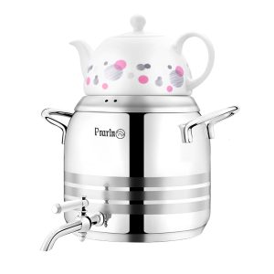 این محصول با بدنهای از استیل ضدزنگ و مقاوم ساخته شده است که نه تنها در برابر حرارت بالا دوام بالایی دارد، بلکه به مرور زمان تغییر رنگ نمیدهد و برق و درخشندگی خود را حفظ میکند. ظرفیت ۵ لیتری کتری باعث میشود این سماور برای خانوادههای پرجمعیت و حتی مهمانیهای بزرگ، گزینهای ایدهآل باشد.